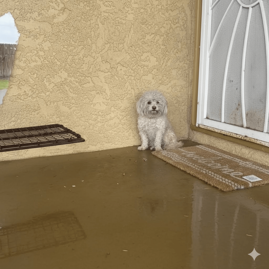 This particular house, with its unassuming beige stucco and a “welcome” mat that felt like a cruel joke, was just another stop in her desperate, endless quest for a place to belong. She’d pawed gently at the wood, whimpering softly, but the silence from within had been her only answer. Her little body shivered, not just from the cold, but from the deep, primal fear of being utterly alone in a world that seemed to have no room for her. The nearby rusty wire rack, perhaps once a grill, now just added to the desolate scene, mirroring her own broken hopes.