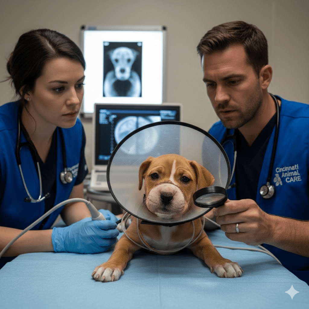 The innocent eyes of a puppy named Tiffany stared out from a cold examination table, her tiny muzzle bearing the cruel evidence of neglect. A tightly wound hairband had been cinched around her snout, leaving a deep, painful laceration that spoke volumes of unimaginable suffering. Discovered by a vigilant citizen and brought to the compassionate care of Cincinnati Animal CARE, Tiffany’s journey began not with a whimper, but with a silent plea for survival. Her initial prognosis was grim; the wound was severely infected, and the possibility of permanent disfigurement loomed large. The shelter team, however, saw past the injuries to the resilient spirit beneath, vowing to provide every ounce of care and love needed to nurse her back to health. This wasn’t just another rescue; it was the start of an extraordinary tale, a testament to the unforeseen challenges and heartwarming triumphs that often define the path to recovery.
