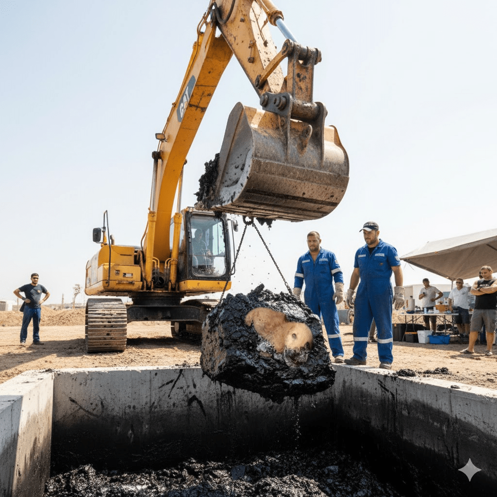 The rescue team, recognizing the urgency, made a bold decision. They couldn’t simply pull Trio out, as that would risk tearing his skin. Instead, they would have to extract a section of the bitumen with Trio still inside, then carefully work on removing the tar away from him in a controlled environment. This was an unprecedented move, requiring heavy-duty tools usually reserved for construction sites. A small excavator was brought in, its massive claw carefully maneuvering to scoop out a block of bitumen, with Trio embedded within it. The tension was palpable; one wrong move could prove fatal for the fragile puppy. Spectators held their breath as the machine carefully lifted the heavy, tar-laden slab, slowly moving it to a shaded, pre-prepared area where a makeshift veterinary station had been set up.