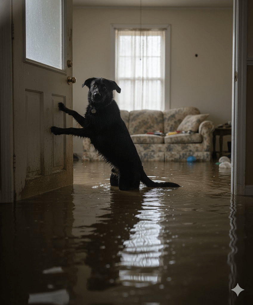 Trixie wasn’t merely a victim of circumstance; she was a dog with an urgent mission. Her world revolved around Mr. Thomas, her elderly owner, whose gentle hands and comforting presence were the anchors of her existence. When the mandatory evacuation orders echoed through their small community, Mr. Thomas, grappling with the early stages of dementia, steadfastly refused to leave his home. He clung to the fading memory of previous floods that had never reached his porch, convinced this time would be no different. Trixie, usually a free spirit, had been secured inside the house for her own safety, a decision that would soon prove to be a twist of fate. As the floodwaters relentlessly climbed, seeping under doors and bubbling through floorboards, Trixie’s frantic barks turned into desperate whimpers. The once solid walls of her home became a watery cage, and her human, oblivious to the encroaching danger, remained stubbornly upstairs.