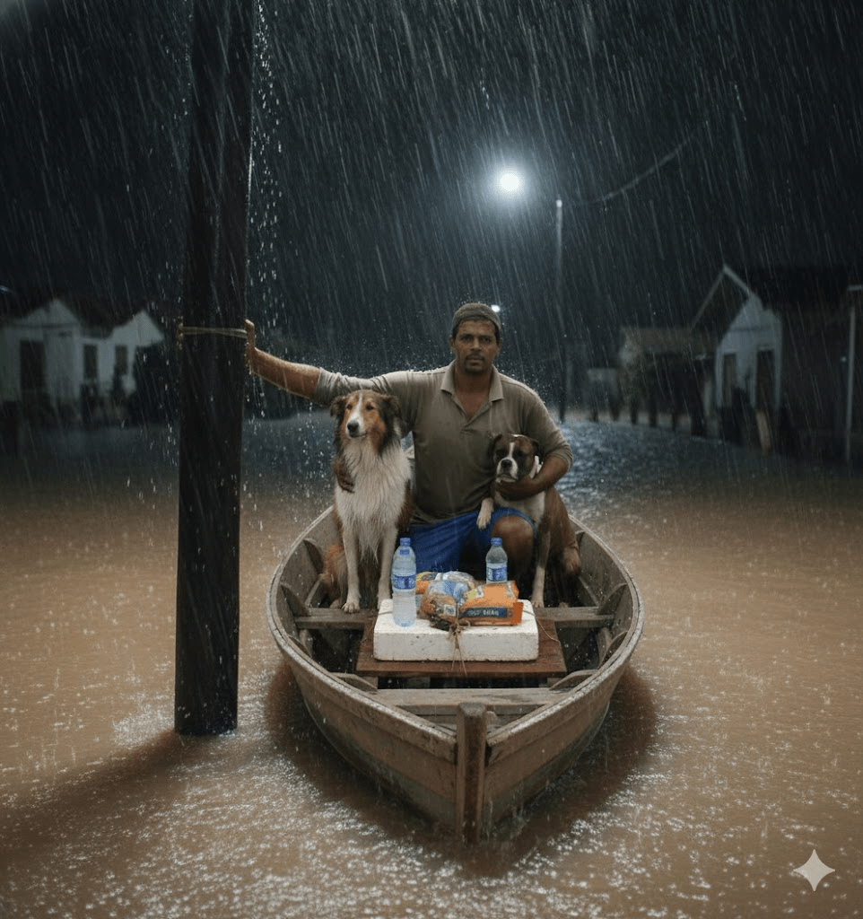 The murky, brown floodwaters rose relentlessly, swallowing streets, homes, and livelihoods in their indifferent advance. The order to evacuate had been clear, urgent, and absolute: leave immediately, and do not risk lives for possessions. For many, this directive, while difficult, was a clear path to safety. But for one man, a quiet hero named Mateo, it presented an agonizing choice that no pet owner should ever have to make. He looked at his two loyal companions, a stoic Collie mix named Luna and a spirited Boxer named Rocky, their eyes reflecting the rising anxiety in the air. The thought of leaving them behind, of abandoning the furry family members who offered unwavering love and comfort, was simply unthinkable. In that moment of profound crisis, Mateo made a decision that defied the official decree but affirmed an unshakeable bond: he would stay, and he would protect his dogs, no matter the cost. His resolve was a silent testament to the true meaning of family, a commitment that would soon be tested in the most harrowing ways imaginable.
