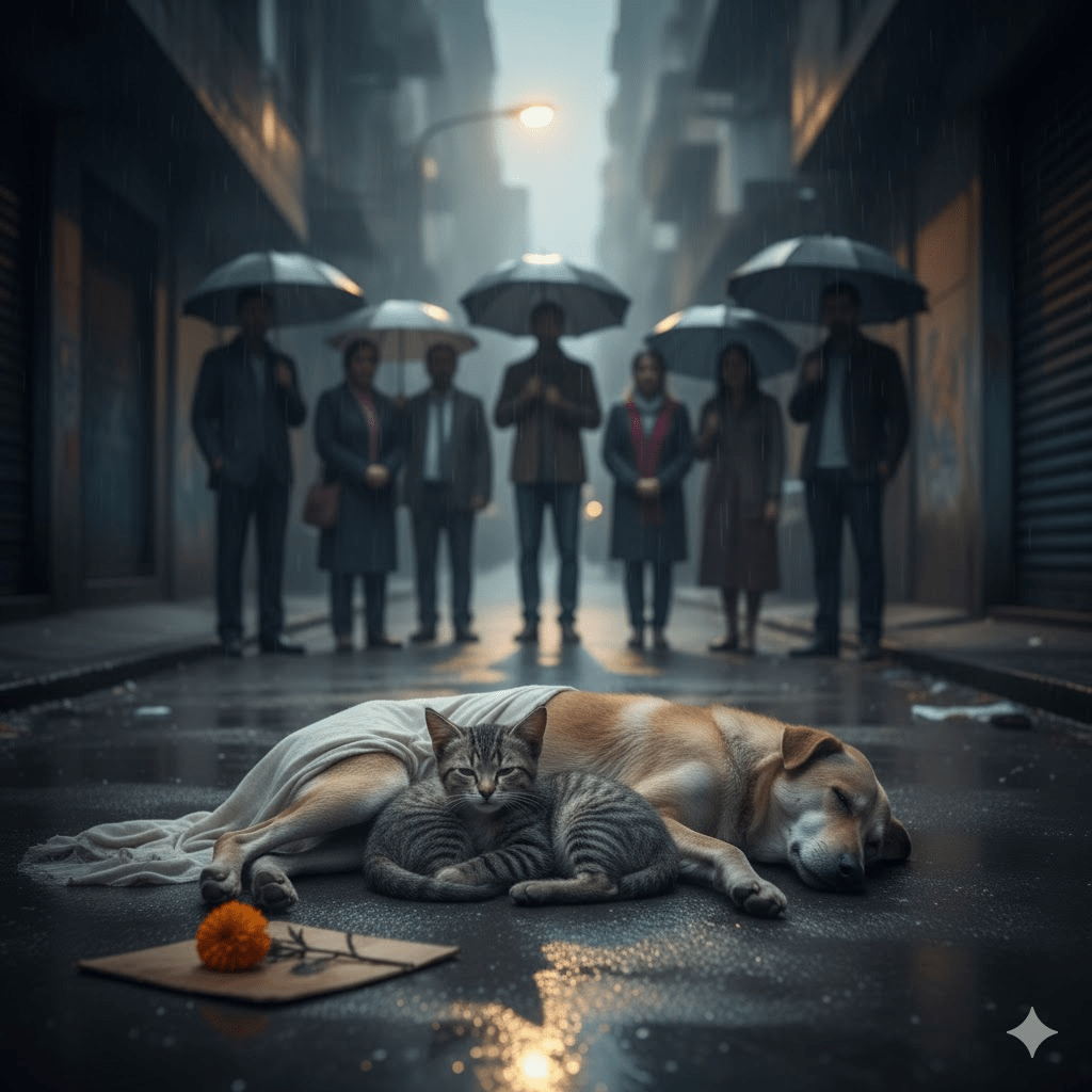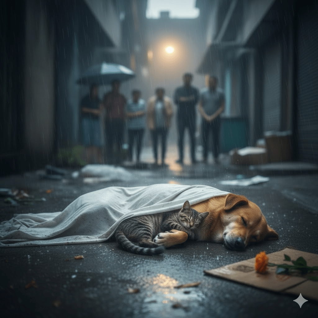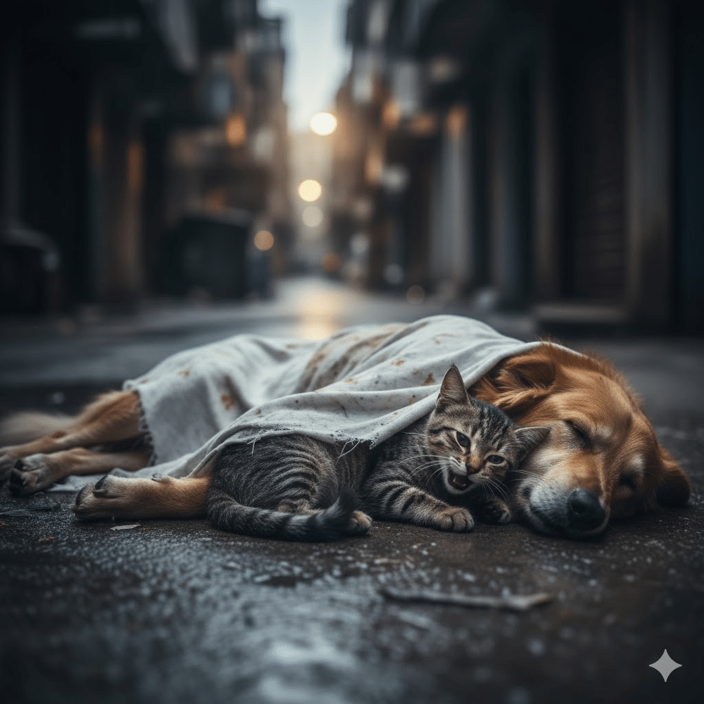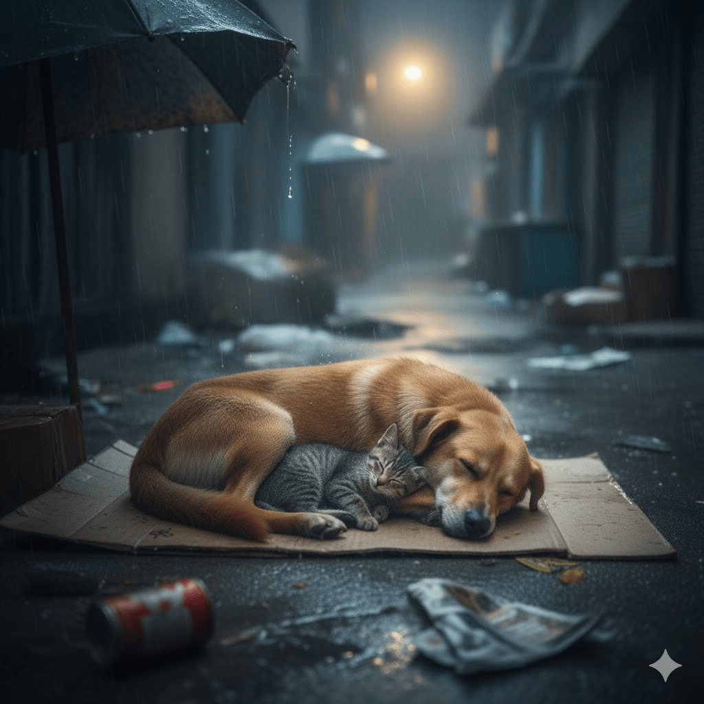In the harsh, unyielding labyrinth of urban alleyways, where survival is a daily war and companionship a rare luxury, existed a testament to love’s enduring power: Bruno, a stray dog, and Mimi, a street cat. Their story, far from a whimsical fable, is a raw, unflinching chronicle of two souls abandoned by humanity, yet bound by a connection so profound it transcended species, hardship, and ultimately, even death. It began not with a gentle introduction, but with a stark, cold reality—Bruno, a gentle giant, cast aside by a family who moved on without a backward glance, and Mimi, a tiny tabby, born into the concrete jungle, knowing only the hunger pangs and the sharp sting of indifference. Their paths, seemingly destined for isolated despair, were about to intertwine in a series of unexpected twists that would challenge the very notion of what it means to be family.