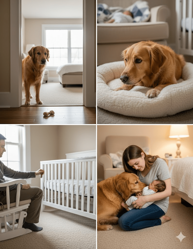 The silence in the house was a new kind of heavy, a quiet that had settled in with the arrival of little Leo. Sarah and Mark had braced themselves for sleepless nights and endless diaper changes, but they hadn’t anticipated the quiet apprehension from their beloved golden retriever, Buddy. For five years, Buddy had been the undisputed king of their home, a furry shadow always at Sarah’s heels. Now, with a tiny, swaddled human occupying most of their attention, Buddy seemed lost, his usual boisterous energy replaced by cautious glances and a tail that barely wagged. They worried, of course, about how he’d adjust, whispering late at night about potential jealousy or, worse, indifference. The first few days were a blur of new parent exhaustion, and Buddy kept his distance, observing the new arrival with an almost scientific curiosity from the doorway, never daring to come too close. This separation, though seemingly minor amidst the chaos of a newborn, weighed on Sarah’s heart.