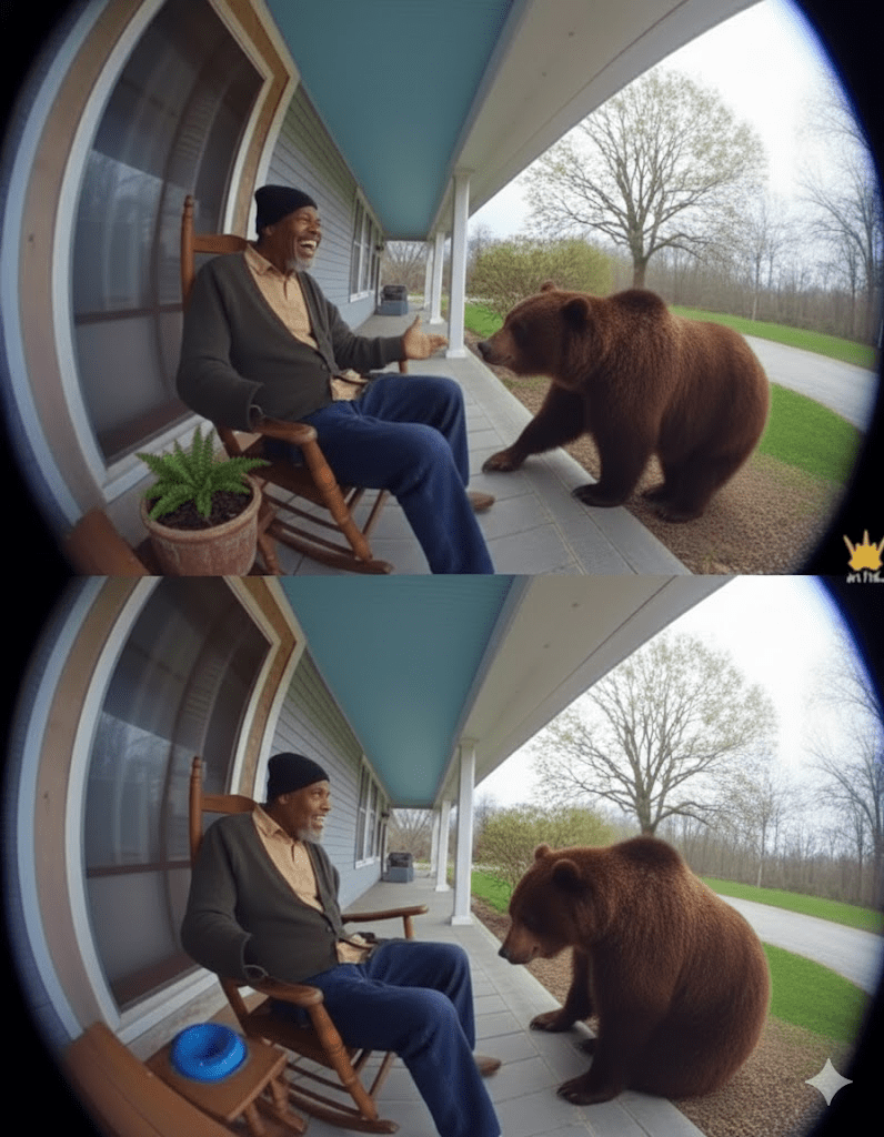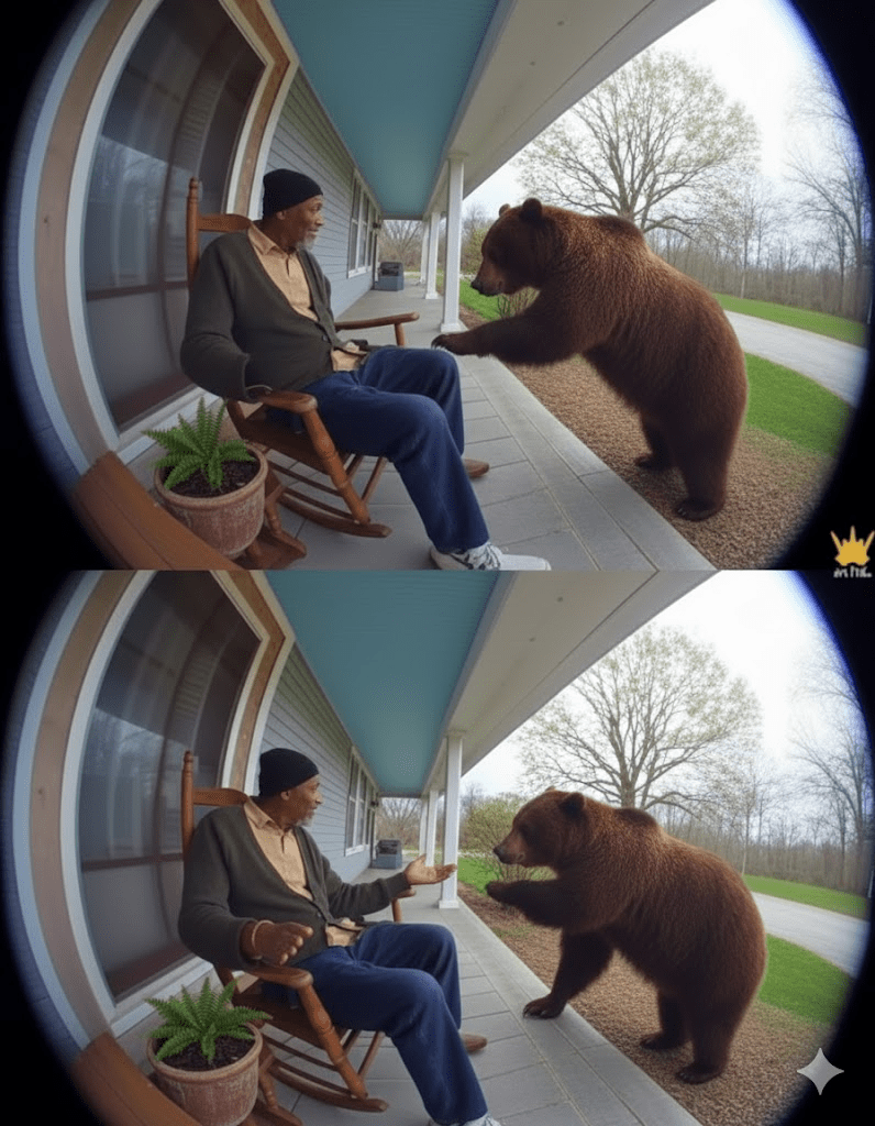 In a quiet, unassuming corner of the countryside, a routine afternoon took an astonishing turn for Mr. Johnson, a resident whose peaceful porch-sitting was interrupted by a most unexpected guest. What started as a typical day, with the gentle creak of his rocking chair accompanying the rustle of leaves, quickly transformed into a moment that would etch itself into his memory forever. The tranquility was shattered not by a sudden storm or a boisterous neighbor, but by the lumbering, majestic presence of a wild bear, venturing remarkably close to his home. This wasn’t a fleeting glimpse from afar; this was a direct, almost intimate encounter that unfolded just feet from where he sat, sparking a mixture of awe, surprise, and a touch of trepidation. The scene, captured by his home’s security camera, provides a captivating glimpse into the unpredictable wonders of the natural world and the occasional, breathtaking overlaps with human life.