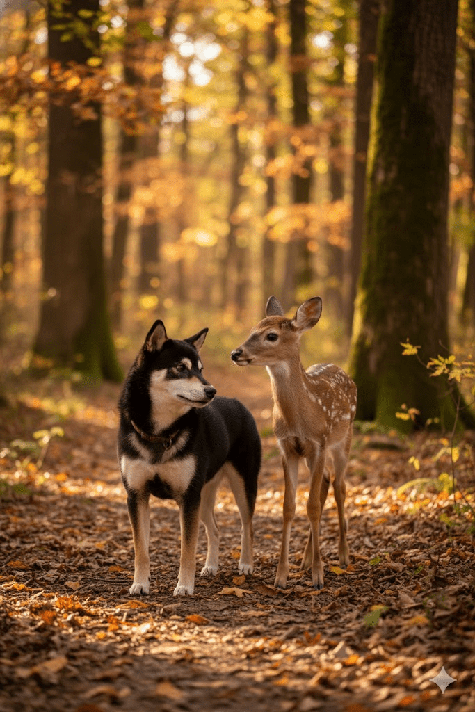 In a heartwarming tale that blurs the lines between domesticity and the wild, a Shiba Inu named Kiko, known for his adventurous spirit and occasional forays into the dense woods bordering his owner’s property, returned home one crisp autumn afternoon with an astonishing companion. What began as a typical jaunt into the familiar forest transformed into an extraordinary narrative of interspecies friendship, leaving his owners, the Watanabe family, both bewildered and utterly charmed. The scene that unfolded before them was nothing short of miraculous: Kiko, with his characteristic confident swagger, trotted into the yard, not alone, but alongside a delicate, spotted fawn, no bigger than a medium-sized dog. The young deer, with wide, curious eyes, seemed to regard Kiko not as a predator or a stranger, but as a trusted guide, mirroring his relaxed demeanor. This unexpected return sparked a local phenomenon, drawing attention to the mysterious ways nature weaves connections, and raising questions about the true meaning of companionship. The event was captured in a now-viral photograph, showcasing the unlikely pair, a testament to the unpredictable beauty of the animal kingdom.