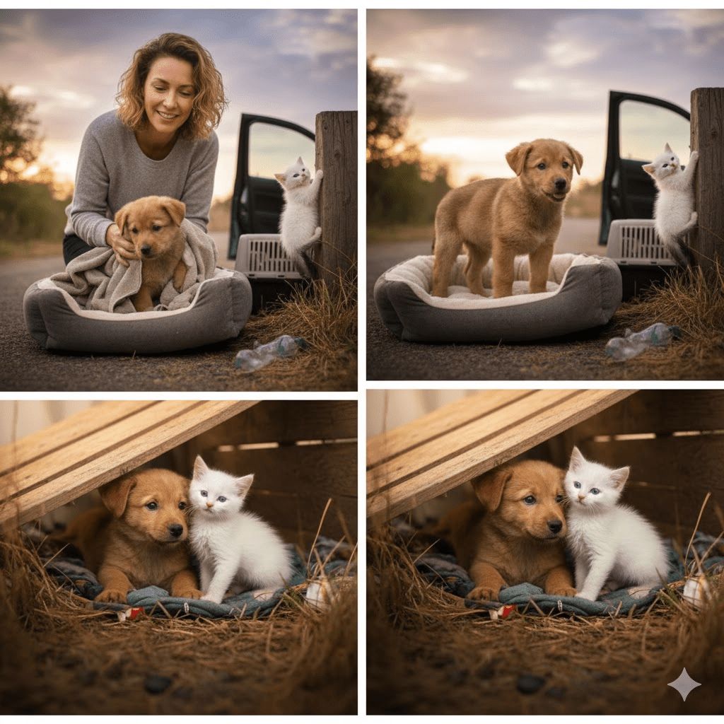 He had been there for what felt like an eternity, abandoned and alone, his tiny frame trembling with hunger and fear. Just a few feet away, a pristine white kitten, equally vulnerable, mewled piteously, her bright blue eyes wide with confusion. They were two fragments of innocence, discarded by circumstances they couldn’t comprehend, yet drawn together by the shared agony of their predicament. Their first hesitant interaction was a silent promise – a gentle nuzzle from the puppy, a tentative sniff from the kitten. In that moment, a bond was forged, an unspoken pact to face the harsh realities of their new world together. The world, however, had more twists and turns in store for these unlikely companions than they could ever imagine. This was not merely a story of rescue; it was a saga of resilience, of love found in the most desolate places, and of the unexpected detours that life often takes. It was a testament to the extraordinary power of connection, proving that even in the face of profound adversity, hope, and companionship can bloom. This article delves into the captivating narrative of their survival, the heartbreaking separation that tested their bond, and the miraculous reunion that brought their story to its heartwarming conclusion.
