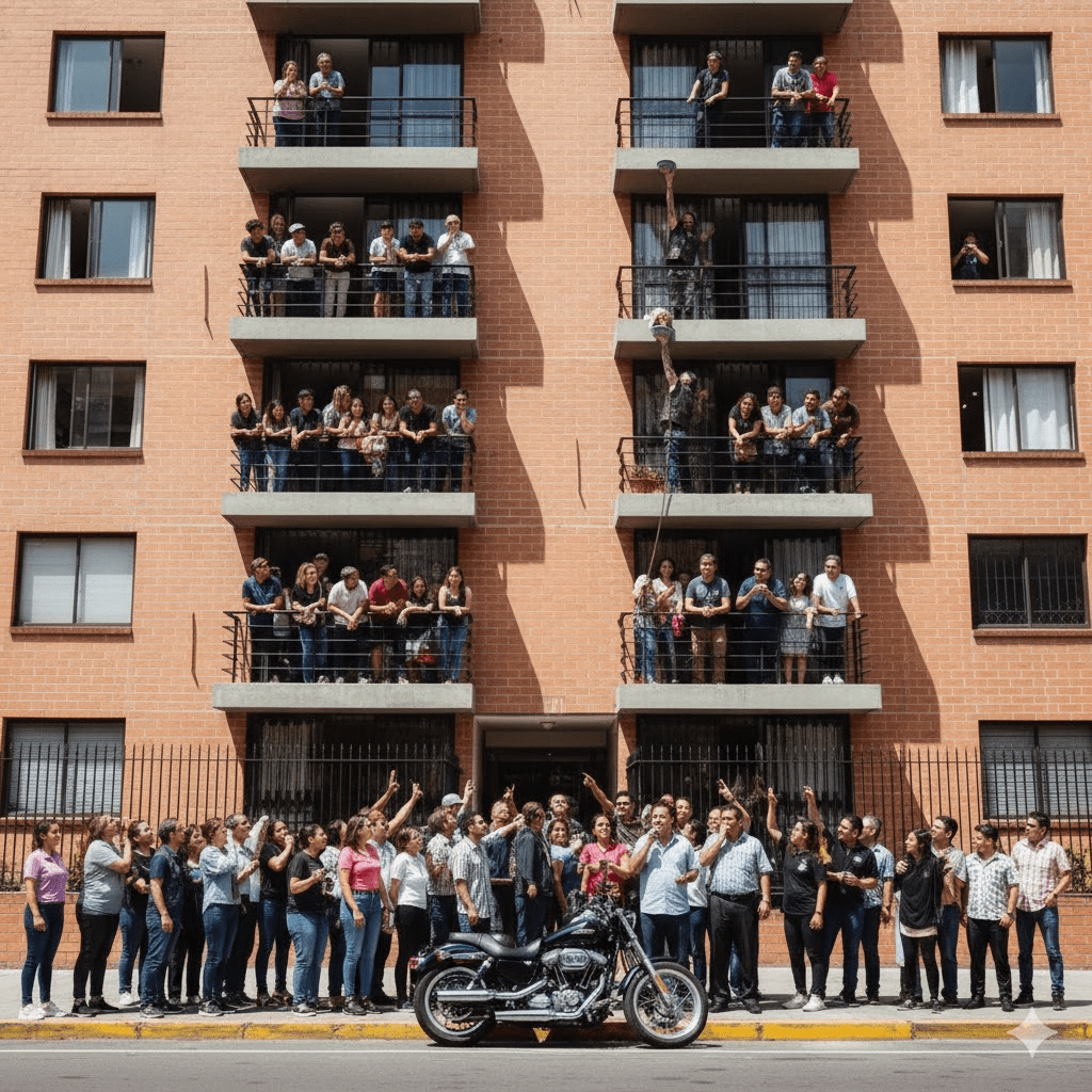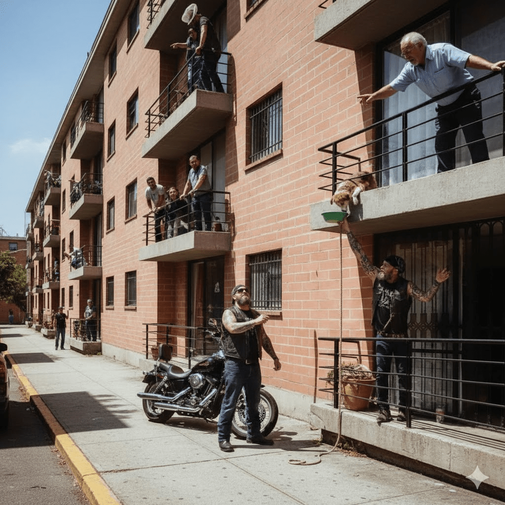 Residents like myself, accustomed to the rhythmic drone of city life and the occasional drama of apartment living, were about to have our preconceptions shattered by the roar of a motorcycle and the quiet determination of its rider. For three agonizing days, a helpless dog had been trapped on a third-story balcony, its whimpers and barks slowly fading into a desperate silence that echoed the building’s collective helplessness. Animal control had cited jurisdiction issues, the police had deferred to animal welfare, and apartment management claimed legal roadblocks. Meanwhile, a life hung in the balance, slowly wasting away under the indifferent gaze of bureaucracy. Then, a rumble vibrated through the streets, growing louder until a figure emerged, a silhouette that many might instinctively avoid: a large man, clad in a leather vest, his arms a canvas of tattoos, the very picture of a stereotypical “biker.” What followed was not the confrontation some might have anticipated, but an act of profound kindness that defied every judgment based on appearance, proving once again that true heroism often wears an unexpected disguise.