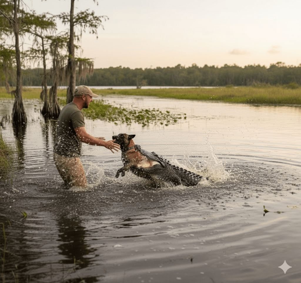 In the serene, often deceptive calm of Southwest Florida’s wetlands, an ordinary afternoon quickly spiraled into a heart-stopping saga of survival, instinct, and an unexpected alliance. Mike, a local resident known for his unwavering bond with his Belgian Malinois, Diesel, had set out for a routine fishing trip. The tranquil waters, usually a source of peace, concealed a lurking danger that would soon test the limits of their courage and companionship. What began as a leisurely outing soon transformed into a dramatic struggle for life, leaving both man and dog forever changed by the harrowing experience and the bizarre twist of fate that saw a common adversary become an unwitting participant in a daring rescue.