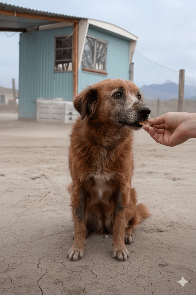 Over several weeks, the bond deepened. The dog, now named ‘Dusty’ for its dusty origins, would greet its benefactor with a gentle wag of its tail, a gesture of affection that spoke volumes. It was clear that the consistent kindness was not just feeding its body, but nurturing its spirit, slowly coaxing it back to life.