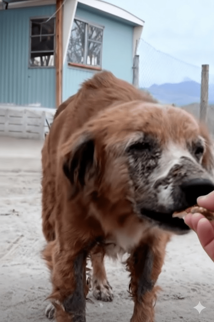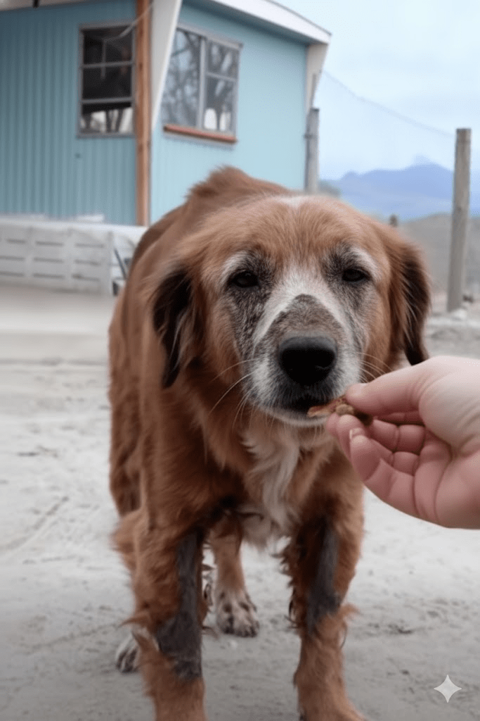 Drawing closer, a small piece of food was offered, a simple gesture that transformed the dog’s wary gaze into a flicker of hope. It took the offering gently, almost reverently, its movements slow and deliberate, as if each bite was a precious gift, a testament to its forgotten dignity. This moment, brief yet potent, was the initial thread in a tapestry of unexpected events.