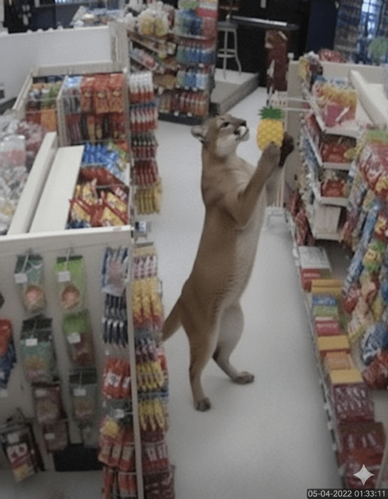 The store manager, Martha Rodriguez, discovered the bizarre incident when she arrived to open the store. Initially, she thought a large dog had somehow found its way inside, but a review of the security footage revealed the astounding truth. The cougar, later identified by wildlife officials as a healthy male, had entered through an automatic door that had momentarily malfunctioned, remaining ajar for just long enough to grant the curious creature access to the brightly lit interior.