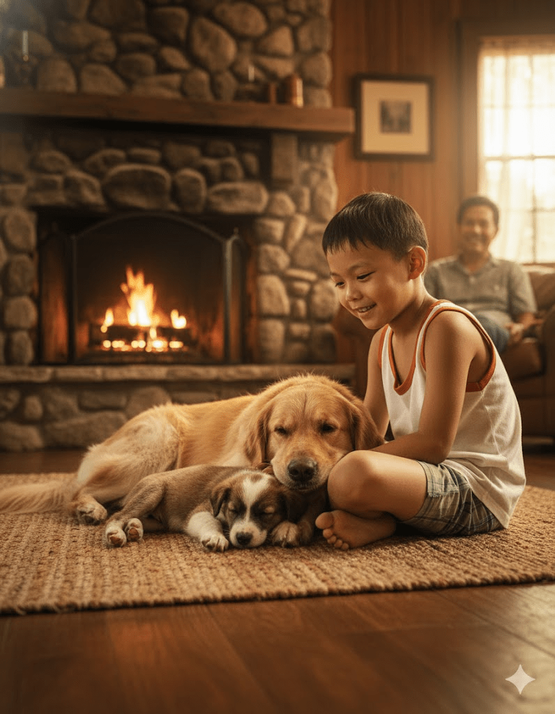 Upon reaching the relative safety of his home, soaked and shivering himself, Ethan’s parents were initially aghast at his daring act, but their concern quickly turned to admiration. They immediately set about warming the little dog, wrapping it in soft towels by the crackling fire. They christened the rescued pup “Stormy,” a poignant reminder of the harrowing circumstances of its salvation. As days turned into weeks, Stormy’s fear gradually melted away, replaced by an unwavering devotion to its young rescuer.